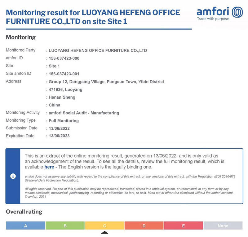 Geçen yıl Hefeng, 10.000 metrekarelik başka bir atölyeyi tamamladı ve Amfori (BSCI) denetiminden başarıyla geçti.